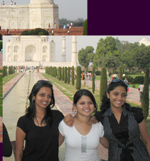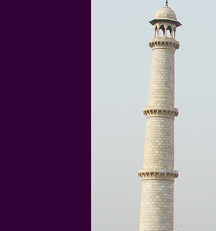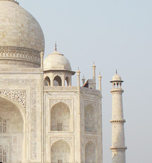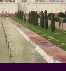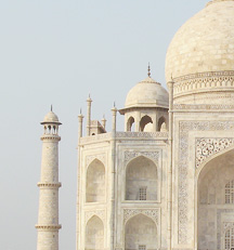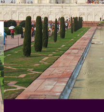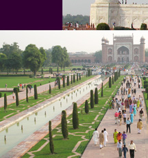 The lower left photo is taken from the apron of the Taj Mahal, looking back at the entrance.